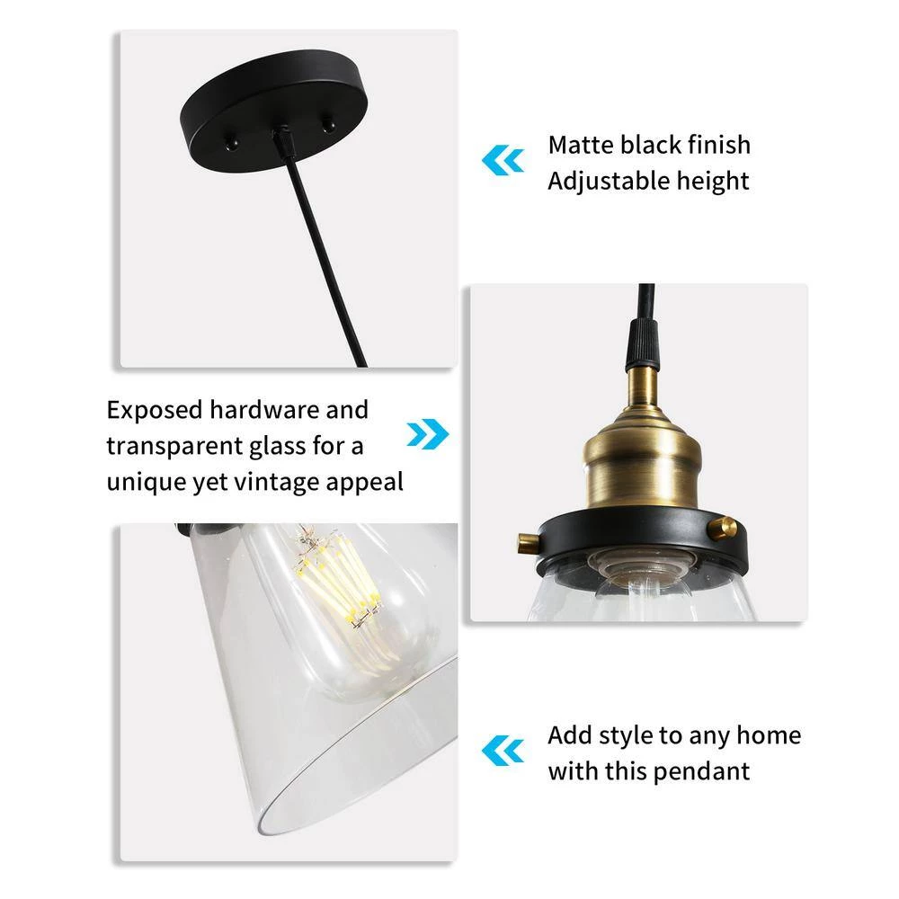 This pendant provides abundant light to kitchen Islands, bars and more. Offering unique vintage appeal, the fixture is finished in black with a clear glass shade for bright illumination. It also features an adjustable hanging length to suit the needs of your space and coordinates beautifully with other pieces. Its exposed hardware and transparent glass shade make for eye-catching elements that bring the best out of your environment.