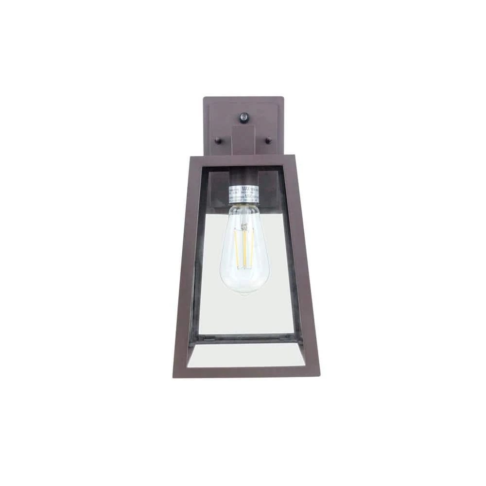 Spitzer outdoor Brown dusk to dawn Wall lantern uses an E26 bulb 1100 lumens for energy saving, low maintenance and long-lasting performance. Dusk-to-dawn photocell sensor. Simple brown finish complements a wide variety of decors, exterior wet rated; ideal for your covered porch, entryway, garage, or any other area of your home.