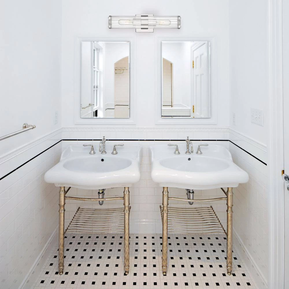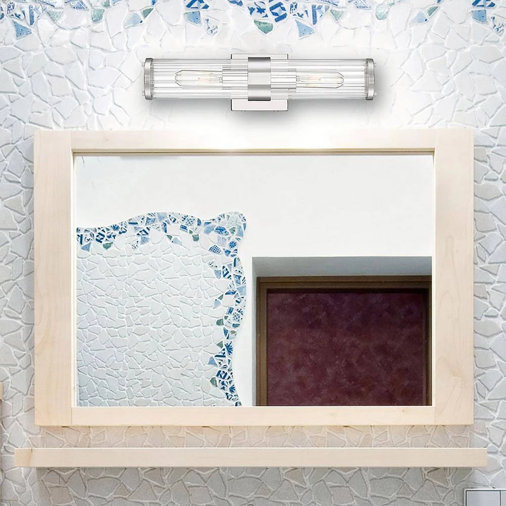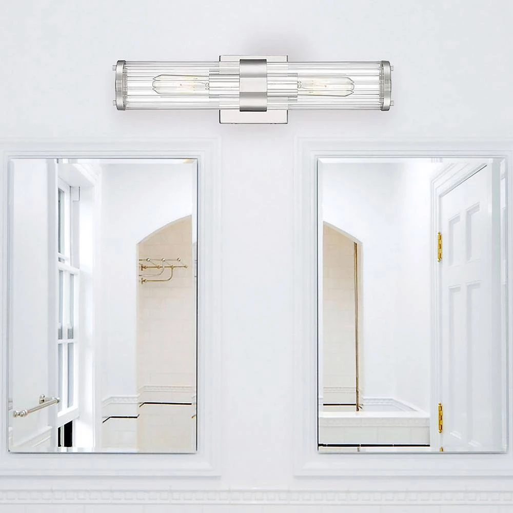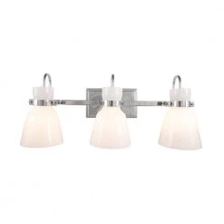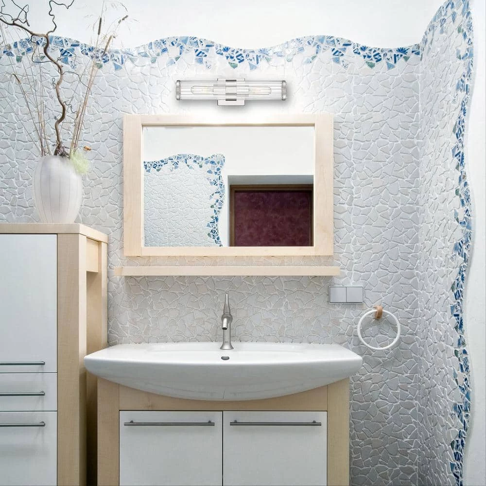 This vanity light is a perfect example of classic style redesigned for today’s home. With its transitional design and stylish Polished Nickel finish, this vanity light will be the star of your bathroom or vanity area. The clear glass shades bring style and sophistication to this fixture, and the shades can face up or down. This light fixture is designed for damp locations such as over bathroom sinks and vanity areas; it’s easy to install and built to last.