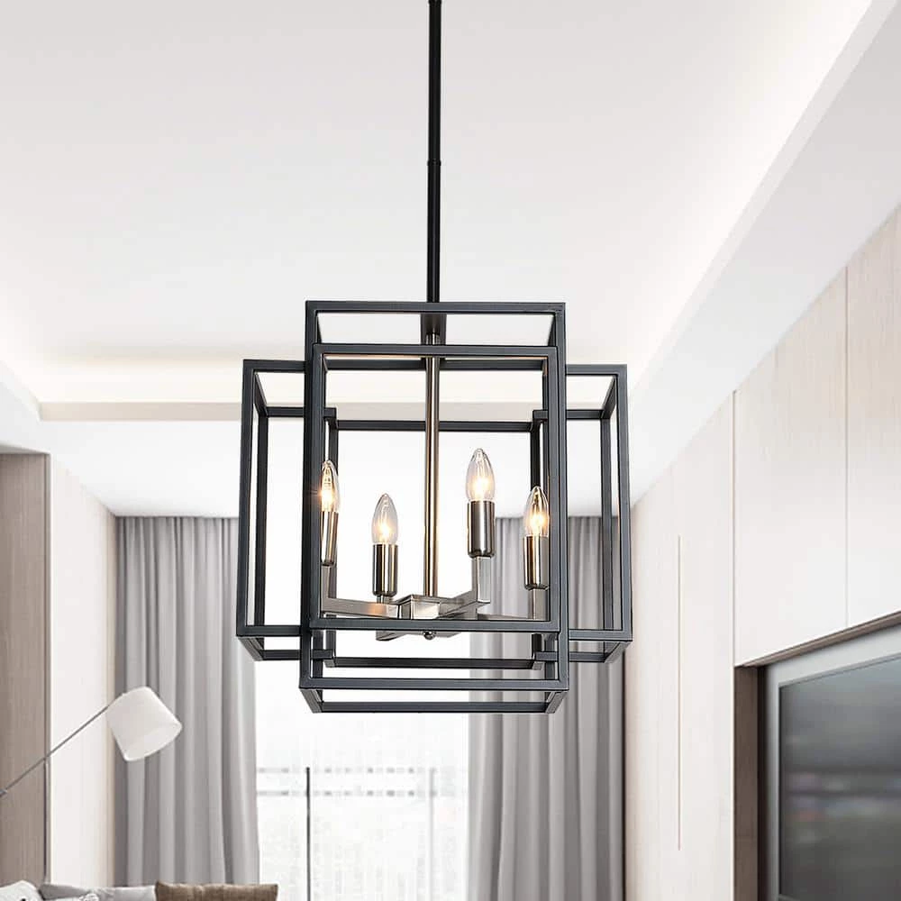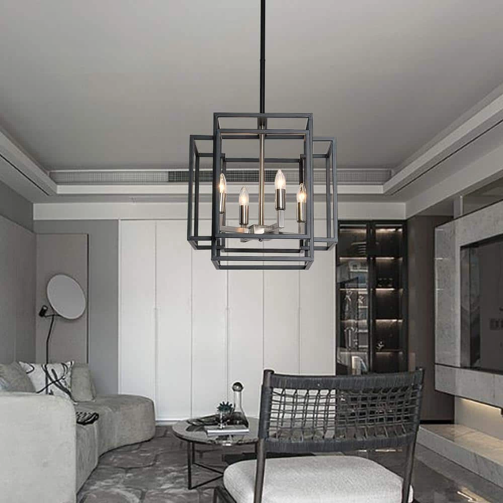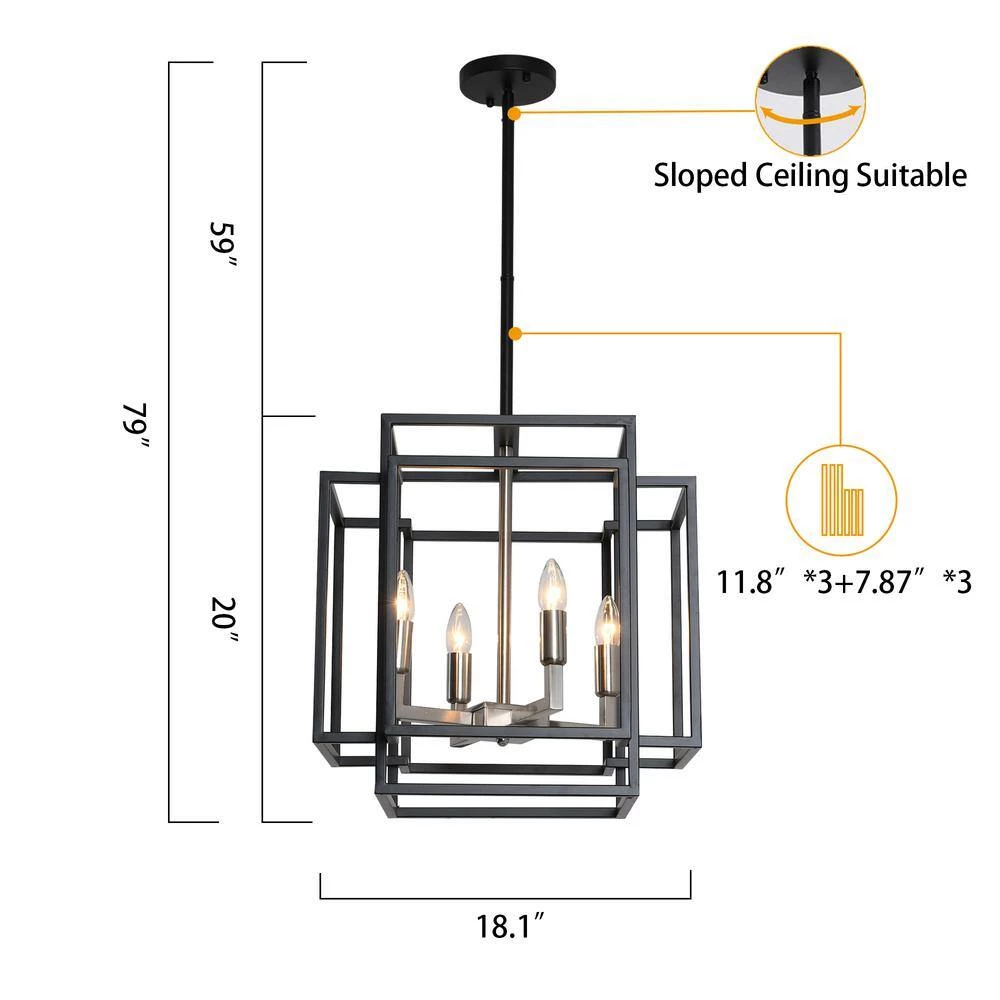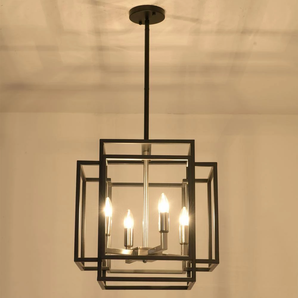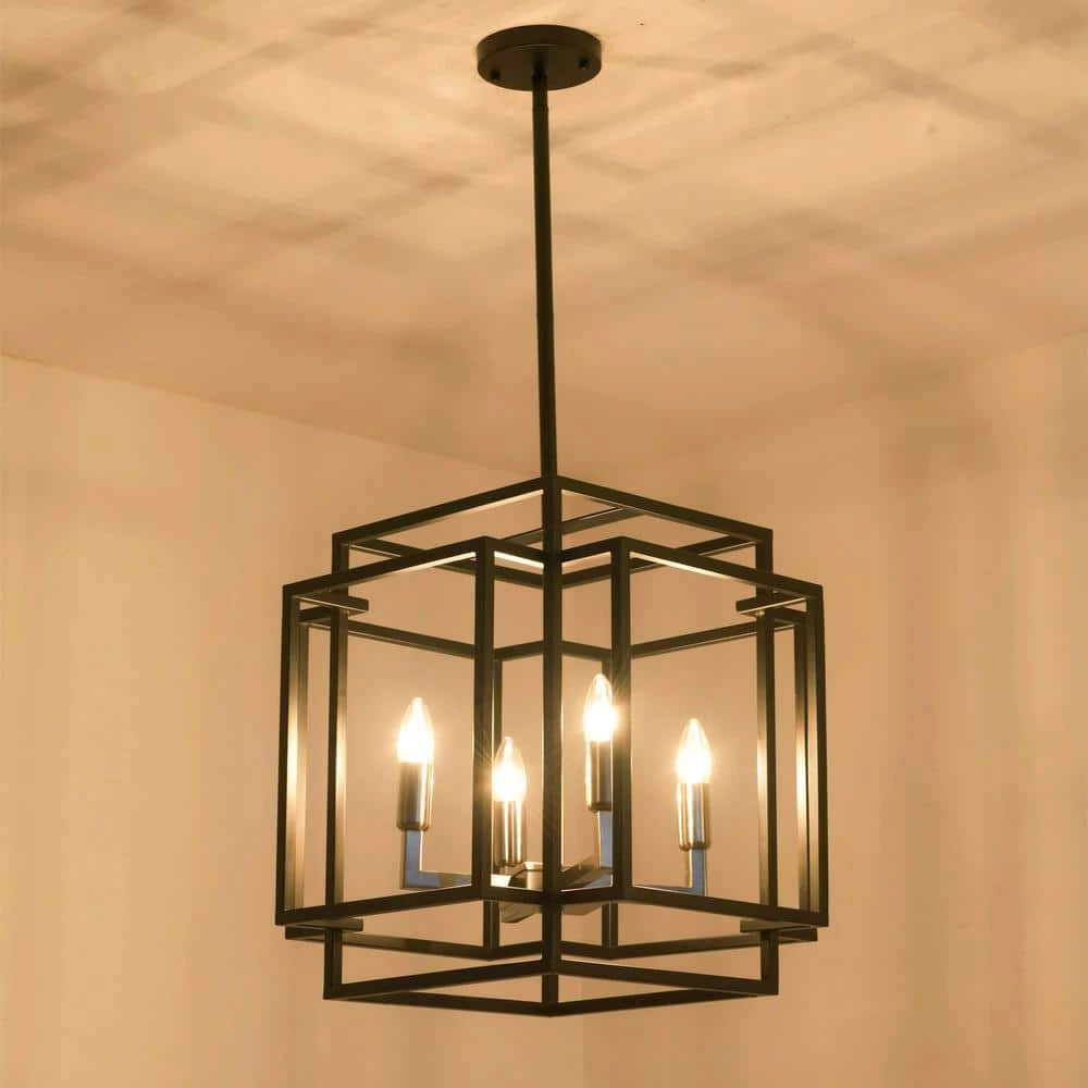 The transitional lantern shape candle style pendant light is strongly recommended if you are seeking for an atmosphere of vantage class and sophistication. 4-light design provides plenty of illumination to your living room, bedroom. The entryway or any place you want within your home and the cage look with wrought iron finish invites a playful scenes to your home. Construction of High hardness metal enables you to use for a long period.