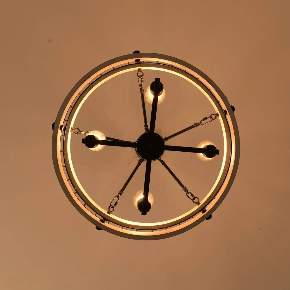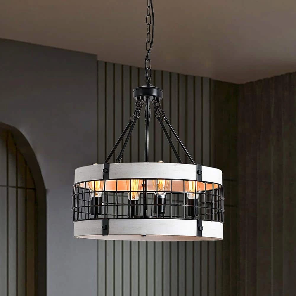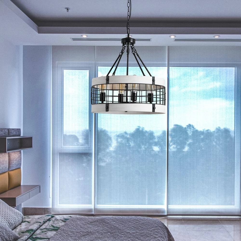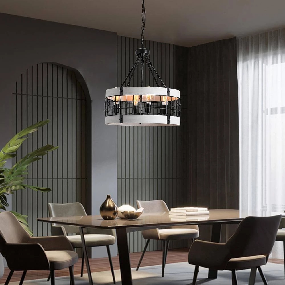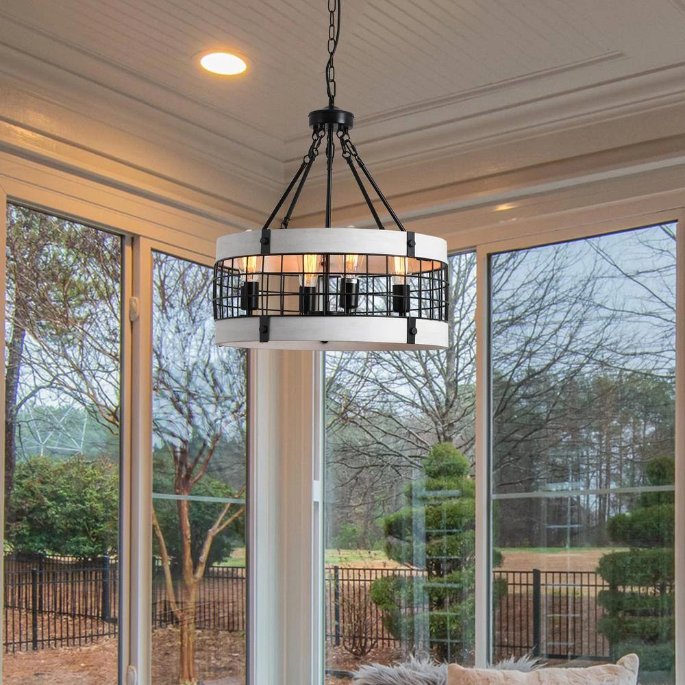 Magic Home 4-light drum chandelier adds a farmhouse touch to any home, business or office. Its open frame design is sure to brighten any room as this light fixture boasts a stunningly real reclaimed oak style wood finish with complementary, classic black accents. Hang above a kitchen island or breakfast nook.