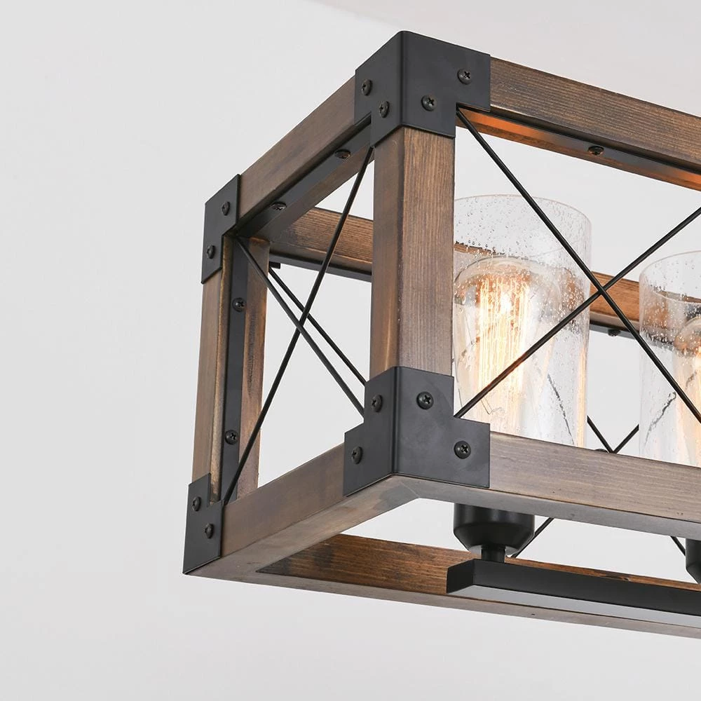 This fun and fresh 5-light kitchen island pendant will light up your home. The Black plus Antique brass rectangle frame presents a taste of rustic industrial style, traditional yet mysterious, making a statement without overpowering the surrounding decor. The multiple light bulbs design brings plenty of illumination for your convenience, fitting for your kitchen, dining room and living room, and the adjustable chain allows you install freely. Metal construction enables a long-lasting service life, worth of a purchase choice.