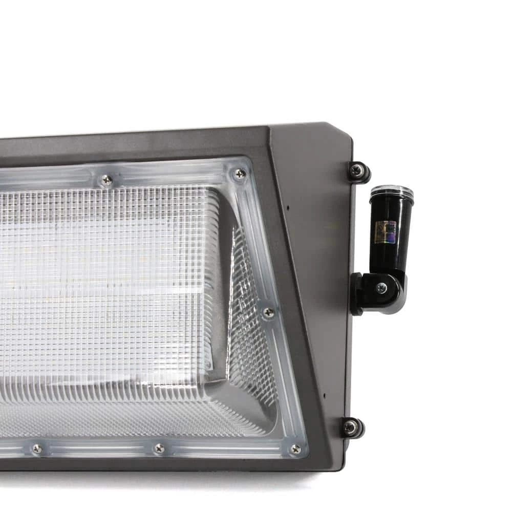 This 120-Watt Wall-pack generate 15800 Lumens or 133 Lumens/Watt, it comes with a external Dusk-to-Dawn photocell turns the light on at dusk, off at dawn, use tempered glass diffuser to avoid turning yellow after long time use. 5000K-day light color temperature with 5-years limited warranty. Consumes less energy, saves up to 60% in energy costs over traditional sources. It adopts Green technology, mercury and UV-free, RoHS compliant components. Superior thermal management with die-cast aluminum heatsink.