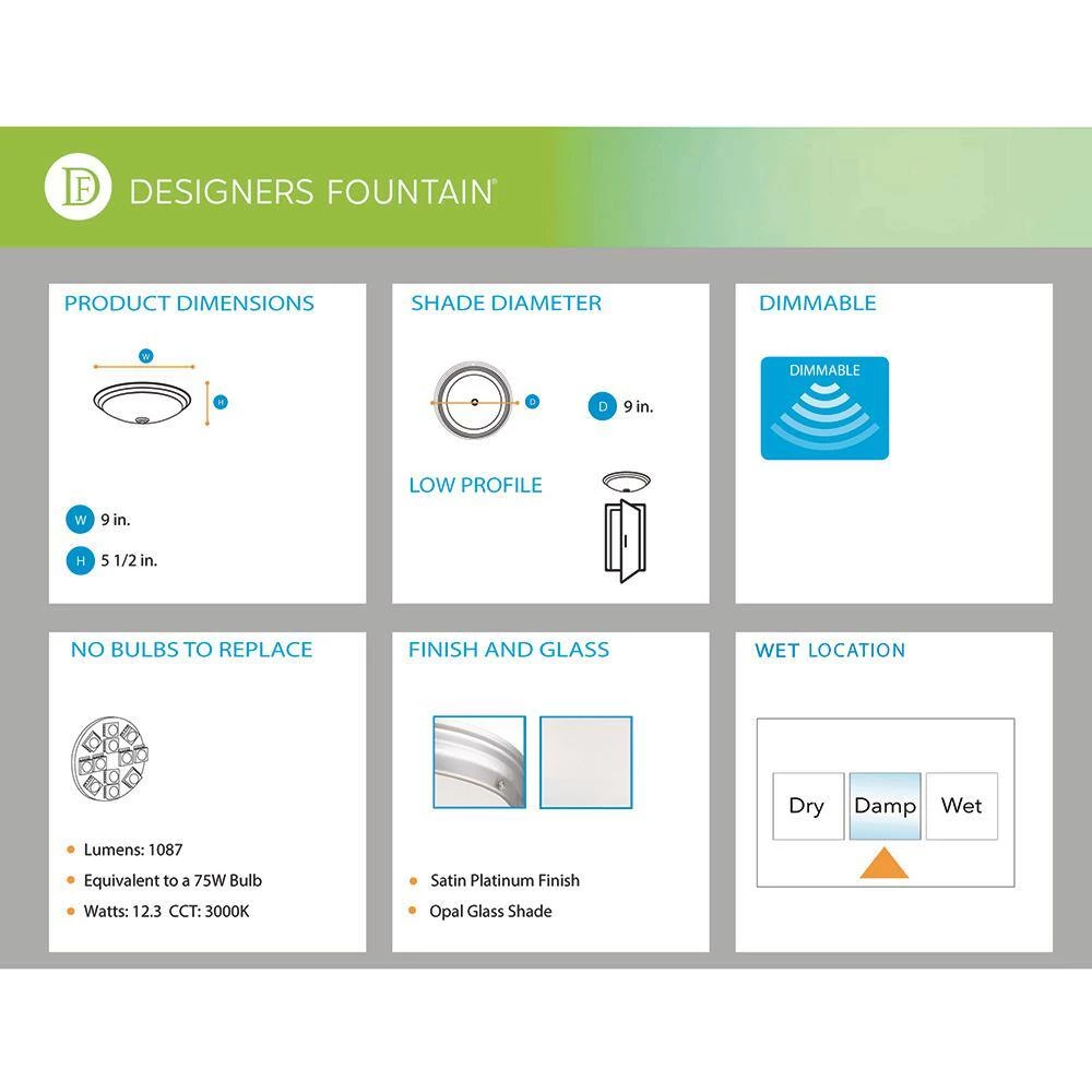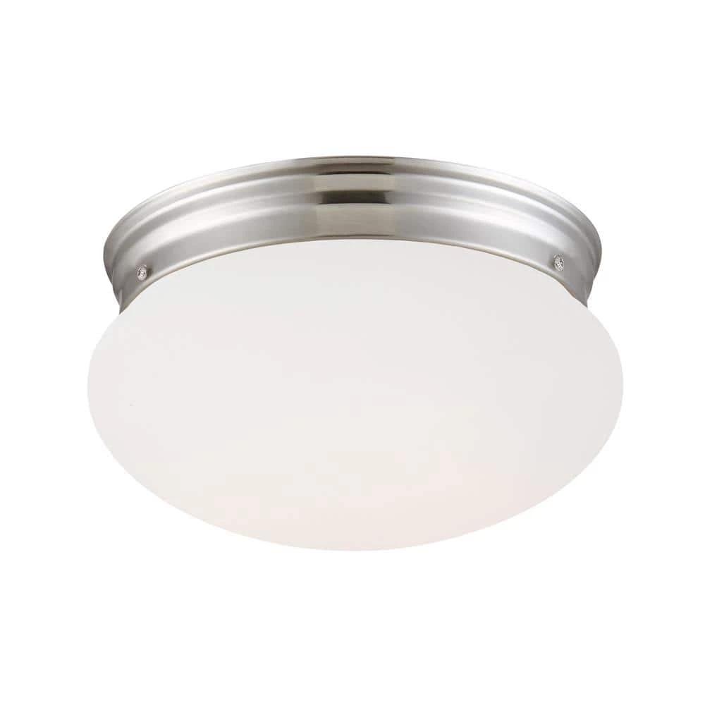 This integrated LED ceiling light provides energy-efficient general purpose lighting for hallways, utility areas, and common areas. It sits flush to the ceiling and delivers 751 Lumens of soft white light, equal to about a 60-Watt light bulb. The brushed nickel finish and simple style blends well with any type of decor, and the frosted white glass shade creates an even glow from the light -no dark spots or shadows. This light fixture is easy to install and mounts directly over a junction box.