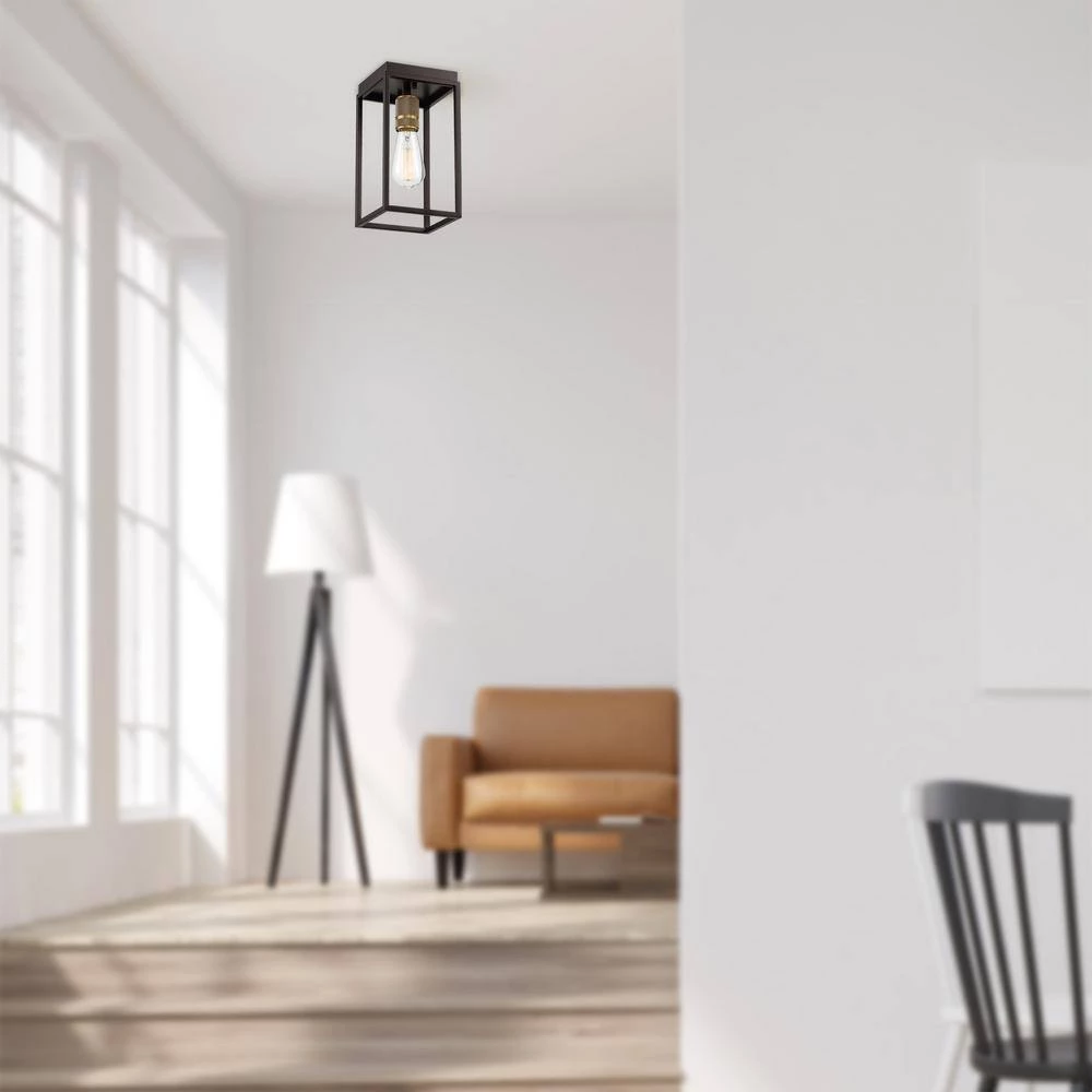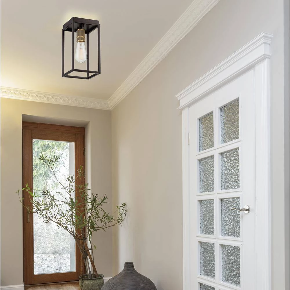 This flush mount ceiling light fixture offers a modern design with a decorative base and open cage style design. The use of modern finishes and the sophistication of this style has taken hold in today’s home interior light fixtures. The protective Artisan Bronze finish and brass textured socket add style to this ceiling light fixture. These flush mounted ceiling lights are built from steel to last for years to come; they are backed by a 5 year limited manufacturer’s warranty. These light fixtures install easily. This ceiling light uses 1 screw based filament style light bulbs up to 60-Watt; light bulbs are not included.