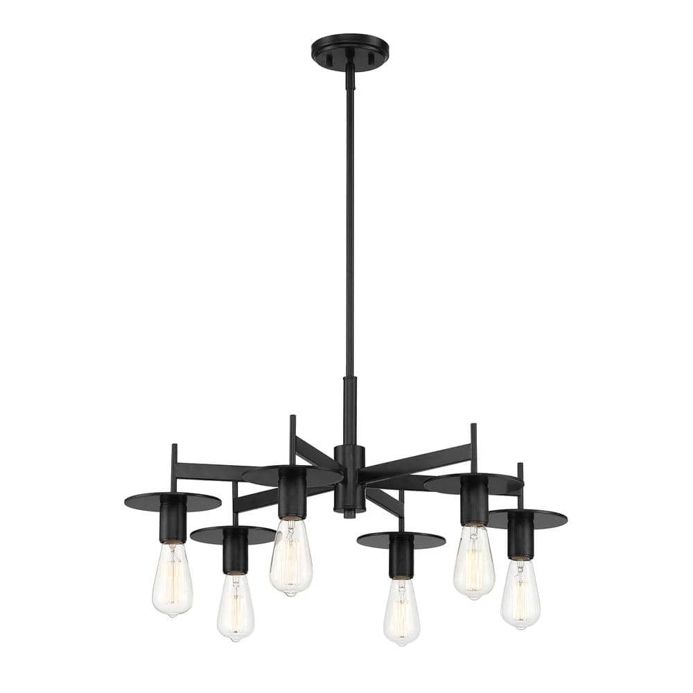 Upgrade the lighting in your home with this Cordelia Lighting 6-Light Chandelier. With a minimal design and classic black finish, this light will work well with many different decor styles. Adjust the hanging length to install in a dining room, nook or bedroom with six medium base 60W light bulbs (sold separately).
