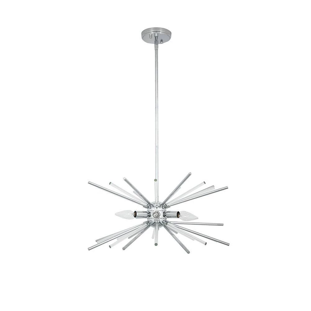 Upgrade the lighting in your home with this Cordelia Lighting Glass Rod Six-Light Pendant. The chrome finish and clear glass rods are designed to complement many different decor styles. This pendant light is ideal for use in larger bedrooms, living rooms, dining areas and nooks, plus it can be mounted on sloped ceilings.