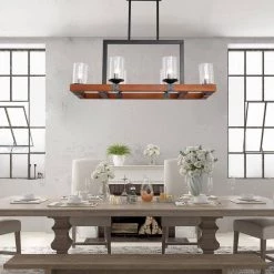 6-Light Kitchen Brown Rectangle Wood Accents Island Chandelier with Glass Shade by Magic Home
