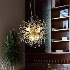 12-Light Copper Sputnik Stainless Steel Crystal Ceiling Firework Chandelier by Magic Home
