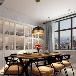 1-Light Black Industrial Linear Dome Hanging Pendant Light with Metal Shade by Magic Home