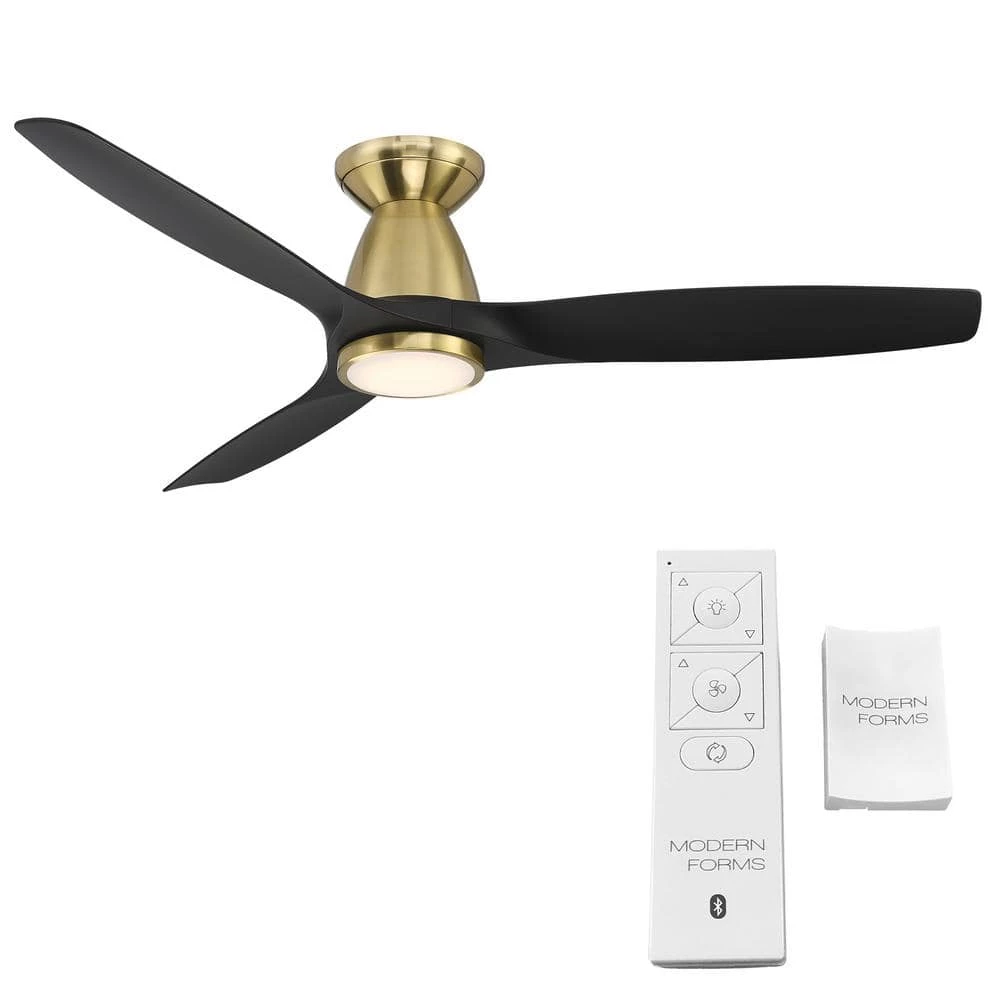 Skylark 54 in. 3-Blade Smart Flush Mount Satin Brass Black Ceiling Fan 3000K and Remote Control by Modern Forms