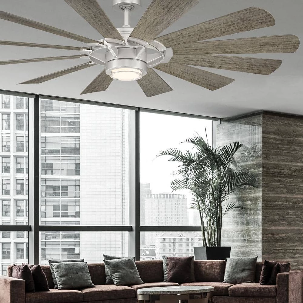 A modern industrial design that performs well in both indoor and outdoor environments, generating a substantial amount of airflow, this wet rated weather resistant ceiling fan housing is constructed with a durable aluminum and operates smoothly despite the harshest elements. 3 handsome finishes are available in matte black, matte black with barnwood, and steel with weathered wood. WYNDMILL features a powerful DC motor that runs smoothly and quietly while operating 70% more efficiently than AC motors. The convenient, 6-speed set-up can be controlled locally using the included remote control or remotely using the Modern Forms app which intuitively integrates with your existing smart home devices.
